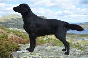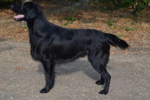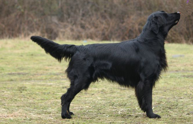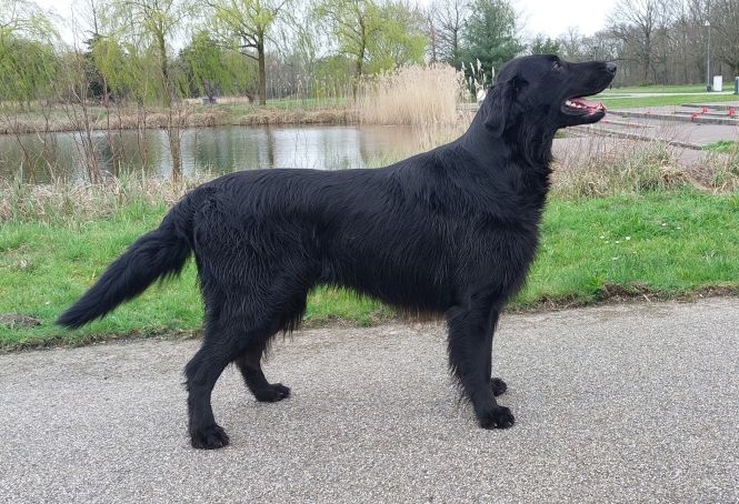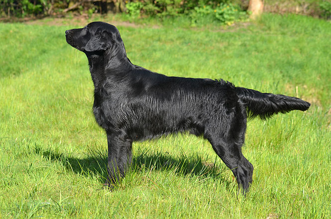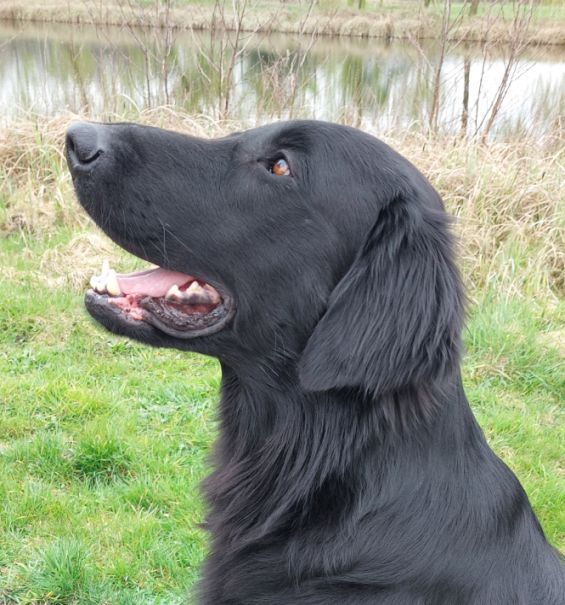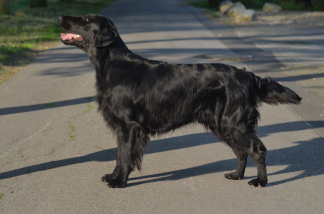 Der 14 Monate alte Flat-Coated Retriever zeigt ein stark ausgeprägtes